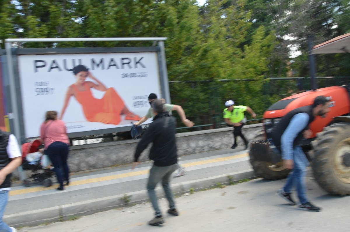 Sözde soyguncular, kuyumcuyu, başından silahla yaraladıktan sonra altınları alarak otomobille kaçtı. İhbar üzerine ekipler, olay yerine geldi. Bu sırada diğer bir ekibe, şüphelilerin otomobille kaçtığı ve içinde 3 kişinin bulunduğu bilgisi verildi.