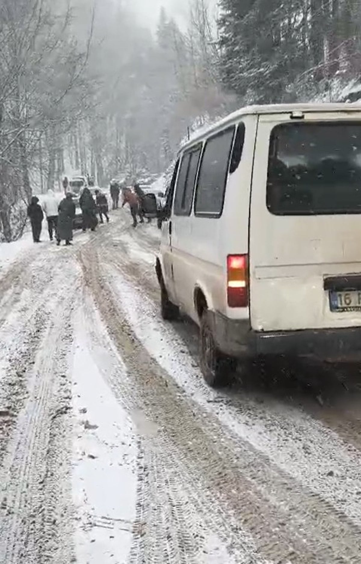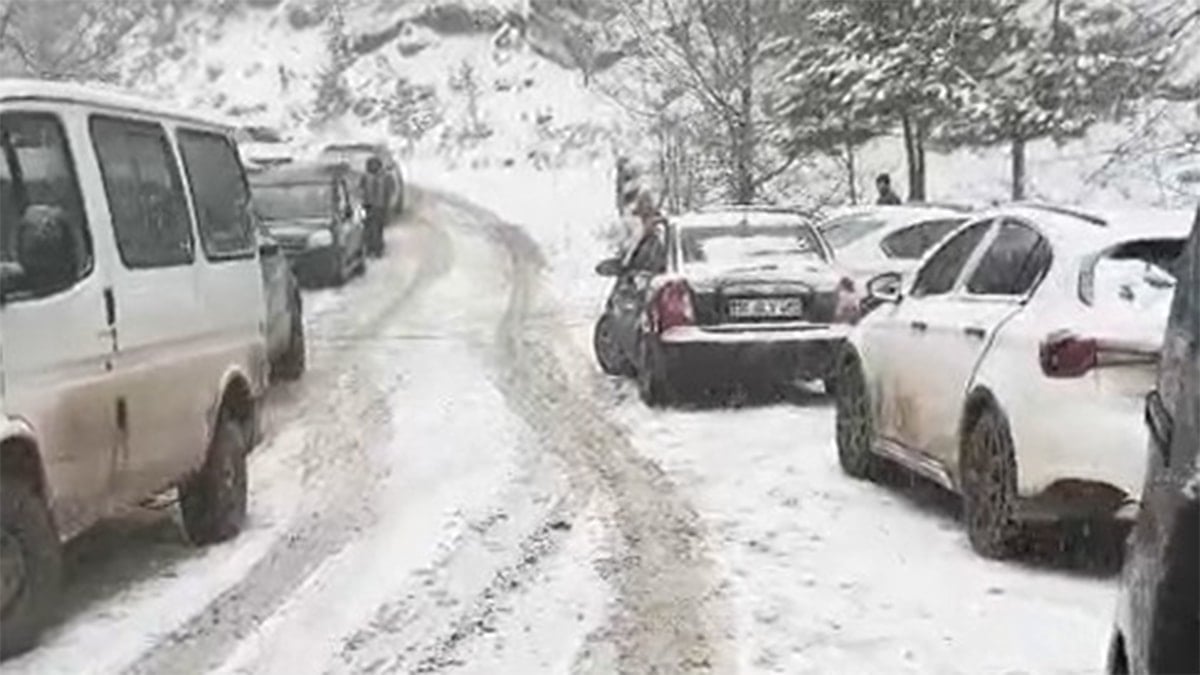 Uzun araç kuyruğu oluşurken, araçlarında kış lastiği olmayan sürücüler ise mahsur kaldı. İnegöl İlçe Jandarma Komutanlığı ekipleri, bölgede trafiği kontrollü olarak sağlıyor.