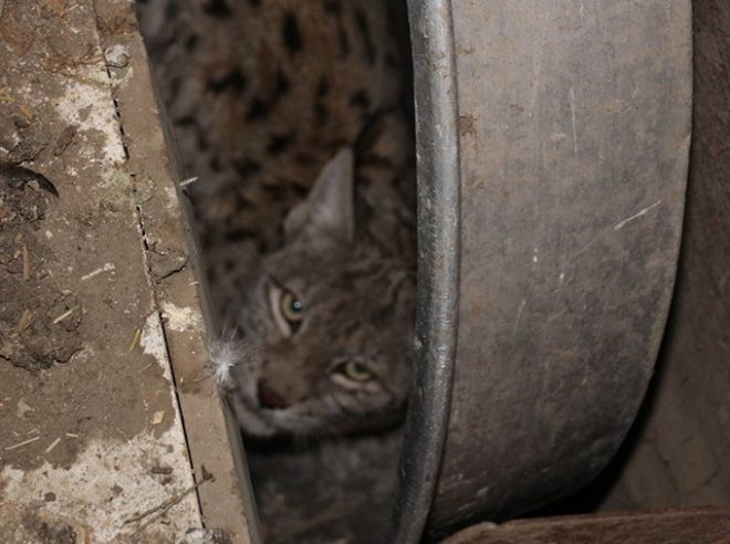 (FOTO: DHA)Gelen görevliler, ahırda gizlenen vaşaka silahla üç uyuşturucu iğne attı. Uzun süre direnen vaşak, sonunda iğnelerin etkisiyle uyudu. Görevliler, vaşağı bulunduğu yerden çıkararak şubeye götürdü. Burada bir süre kontrol altında tutulacak olan vaşak, daha sonra doğal hayatına bırakılacak.