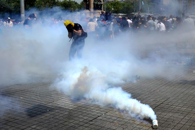 İstanbul, çatışmalar sürüyor. Polis biber gazı sıkıyor.