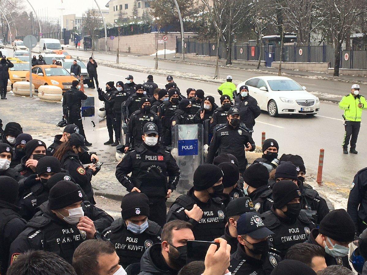Polis, kalabalığın dağılması için uyarıda bulundu. Bunun üzerine polis ile grup arasında arbede yaşandı. Grup, polis müdahalesi ile bölgeden uzaklaştırıldı. DHA