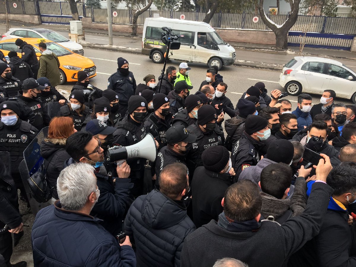 Önlem alan polis ekipleri, izinsiz olduğu gerekçesiyle basın açıklaması yapılmasına izin vermedi.