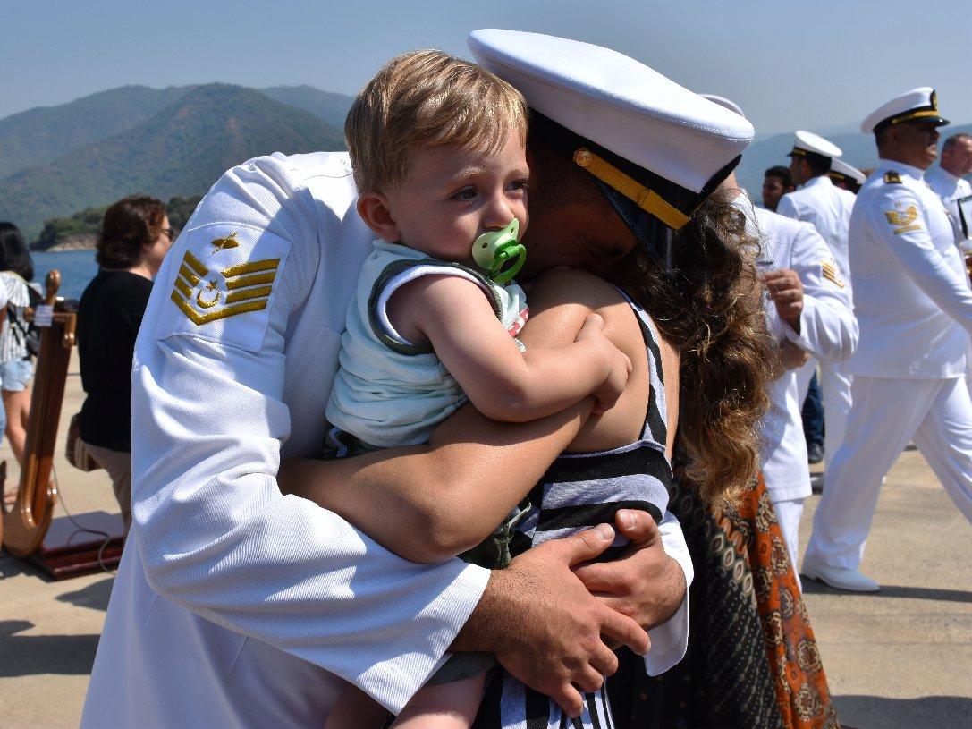 Daha sonra tören alanında bekleyen yakınlarıyla hasret gideren askerler, görev yaptıkları gemiyi ailelerine gezdirdi.