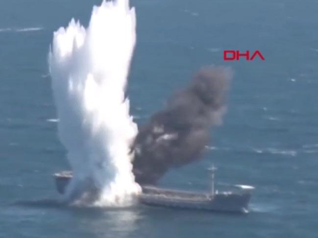 TCG YILDIRAY denizaltısı, gemiyi torpido atışı ile böyle batırdı