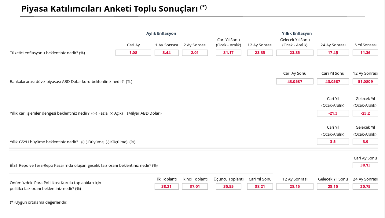 Aralık ayı PPK toplantısı için politika faizi beklentisi ise yüzde 38,21 olarak kaydedildi.