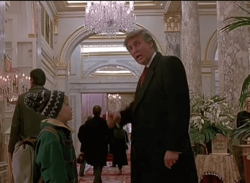 Evet, filmdeki bu detayı kaçıranlara yeniden hatırlatalım: Kevin, girdiği otelde bir adama lobiyi sorar. İşte o adam, Donal Trump'tır. Hatta Trump'ın kadraja zorla girdiği belirtilir.