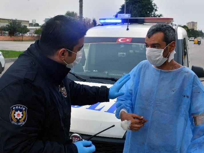 Polisin maske takıp, mesafeli durduğu Kaya, hastaneden taburcu olduğunu öne sürdü. Polis, Kayaya kıyafetlerinin nerede olduğunu sordu. Kaya ise bıçaklandığı için kıyafetlerinin kanlı olduğunu, bu nedenle hasta önlüğüyle çıktığını öne sürdü. Kaya, ekipler tarafından yeniden hastaneye götürüldü. (DHA)