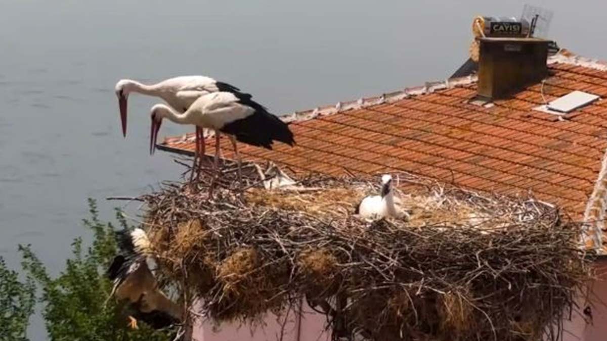 "Yaren" ile "Nazlı" leyleğin yavrularından ikisinin yumurtadan çıktıktan sonraki günlerde ölmesinin ardından diğer yavrulardan birinin de yuvada bitkin düştüğü fark edildi.