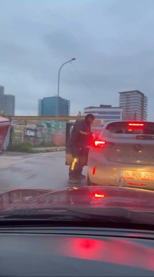 Anlaşmazlığın ardından motosikletinden inerek otomobilin yanına yaklaşan şahıs, aracın kapısını zorla açtı. İçeride direksiyon başında bulunan sürücüyü kolundan sıkıca tutarak zorla dışarı çıkarmaya çalışan motosiklet sürücüsü, tehdit ve hakaretler savurdu.