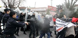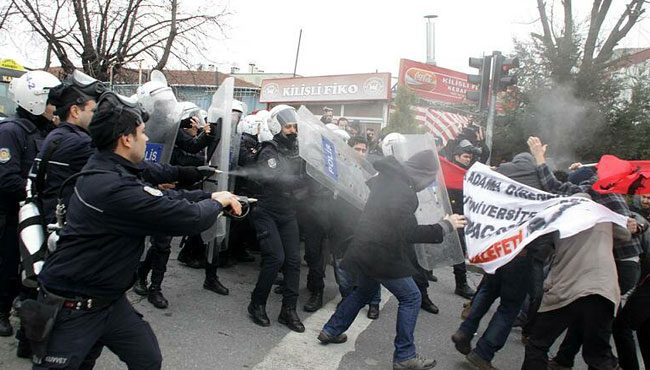 Bir süre slogan atan grup, konferansın yapıldığı Marmara Üniversitesi Haydarpaşa Yerleşkesi'ne doğru yürümek isteyince polisin müdahalesiyle karşılaştı. Polisin copla yaptığı müdahale sırasında bir polis de grubun üzerine biber gazı sıktı.