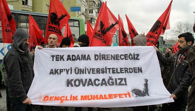 Kadıköy'de, bir süredir tartışılan başkanlık sistemini protesto eden Gençlik Muhalefeti üyelerine polis müdahale etti. Müdahale sonrası pankart açıp bir süre slogan atan grup, TOMA aracının gelmesinin ardından eylemlerine son verdi.Marmara Üniversitesi Haydarpaşa Yerleşkesi'nde düzenlenen ve Başbakan Yardımcısı Bekir Bozdağ'ın da katıldığı 'Hükümet Sistemi Arayışları ve Başkanlık Sistemi' konulu konferans öncesi Rıhtım Caddesi'nde toplanan Gençlik Muhalefeti üyesi 35 kişi, başkanlık sistemini aleyhine slogan atmaya başladı. Ellerinde flamalarla çevik kuvvet polisinin güvenlik önlemleri aldığı Tıbbiye Caddesi girişine kadar yürüyen grup, burada, üzerinde "Tek Adama Direneceğiz. AKP'yi Üniversitelerden Kovacağız" yazılı pankart açtı.