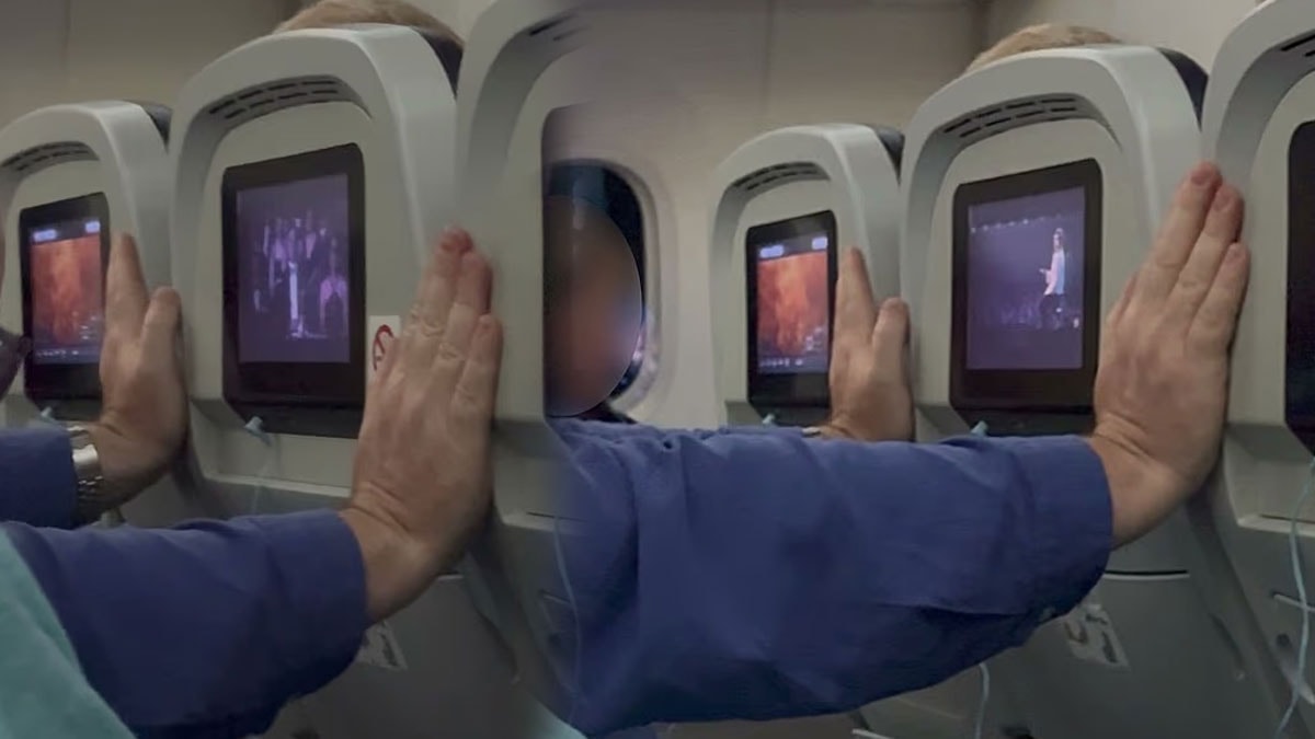 Gary'nin kaydettiği görüntülerde yolcunun ellerini tüm sırayı kaplayacak şekilde yerleştirdiği ve film izlerken bile pozisyonunu bozmadığı görülüyor. İddiaya göre adam sadece yemek yemek için ellerini koltuktan çekti, yolcular koltuklarını yatırmaya çalıştığında ise sertçe geriye itti.