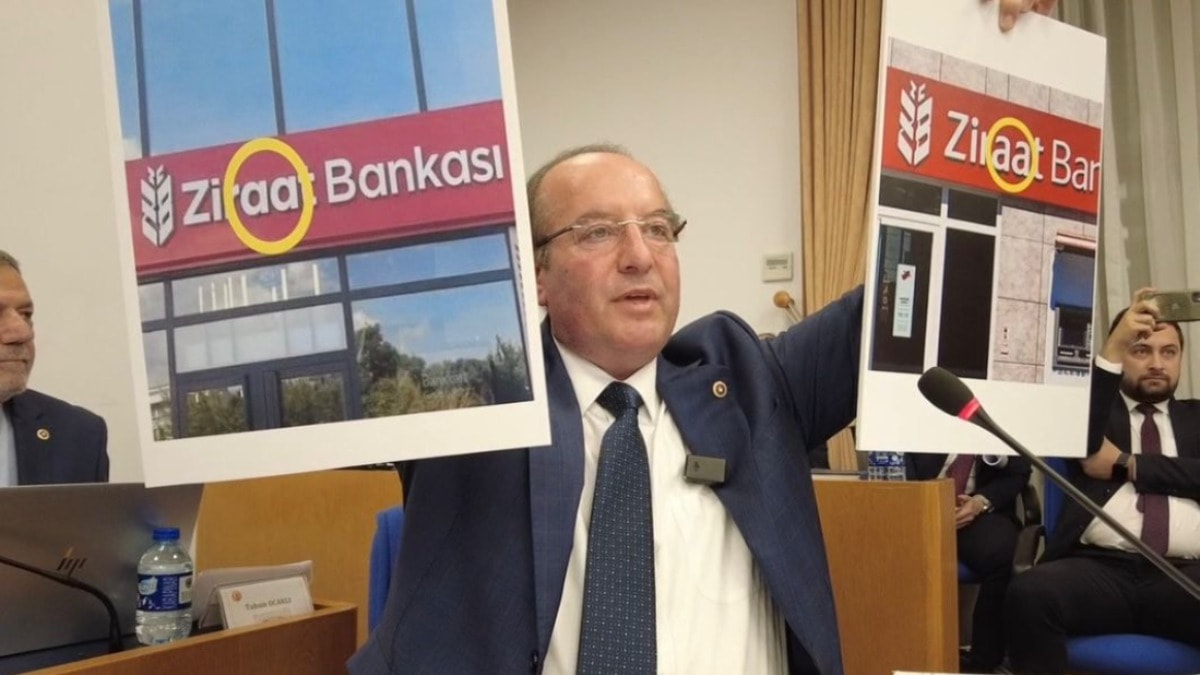 Ziraat Bankası şubelerindeki eski ve yeni tabelaların iki ayrı fotoğrafını komisyonda havaya kaldıran Akay, “Bu elimde gördüğünüz iki fotoğraf arasında tam 1 milyar liralık fark var. Biri eski amblem ikincisi sadece ‘a’ harflerinin şekli değiştirilerek yapılmış ikinci amblem. Yaklaşık 2 bin şubedeki tabelalar, dijital öğeler, banka hesap cüzdanları, kartvizitler, antetli kağıtlar, tüm materyaller değişiyor, bu da 954 milyon liralık bir savurganlığa mal oluyor” dedi.