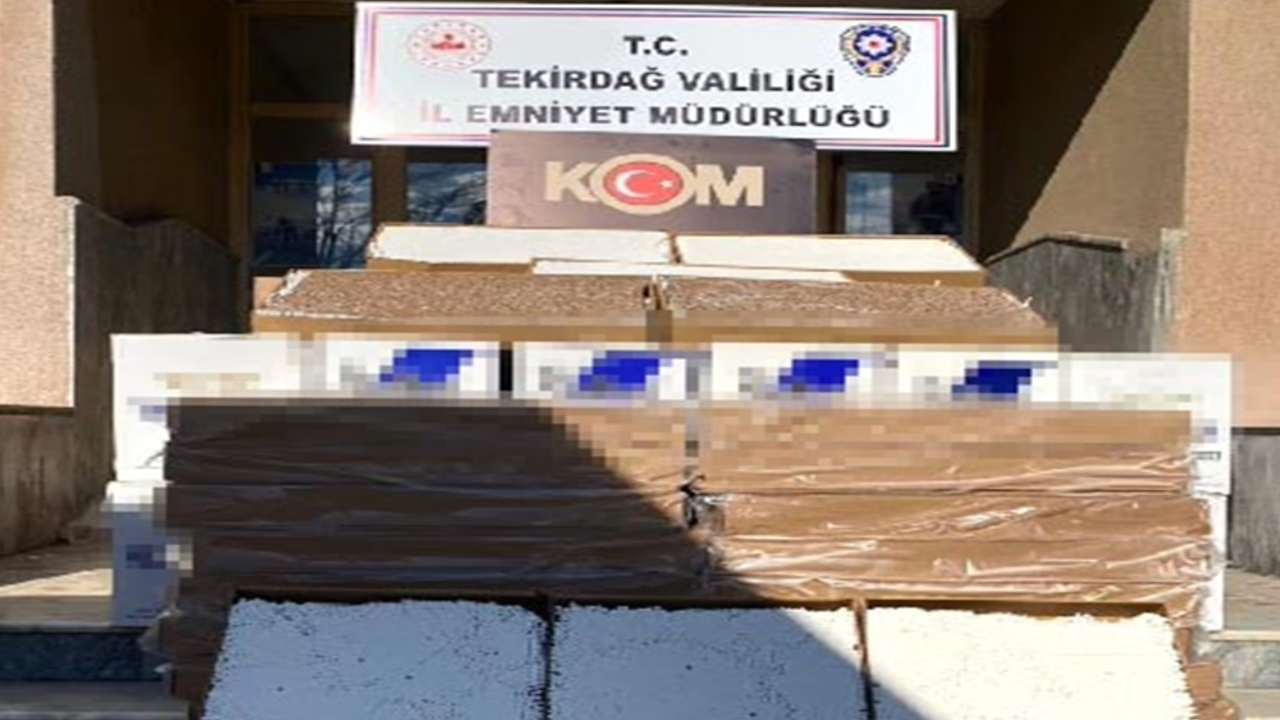Çorlu ilçesinde belirlenen adreslerde eş zamanlı yapılan aramalarda; 335 bin 200'ü dolu olmak üzere 375 bin 200 makaron ile 380 kilo açık kıyılmış tütün ele geçirildi. 2 şüpheli gözaltına alınırken, soruşturma sürüyor.