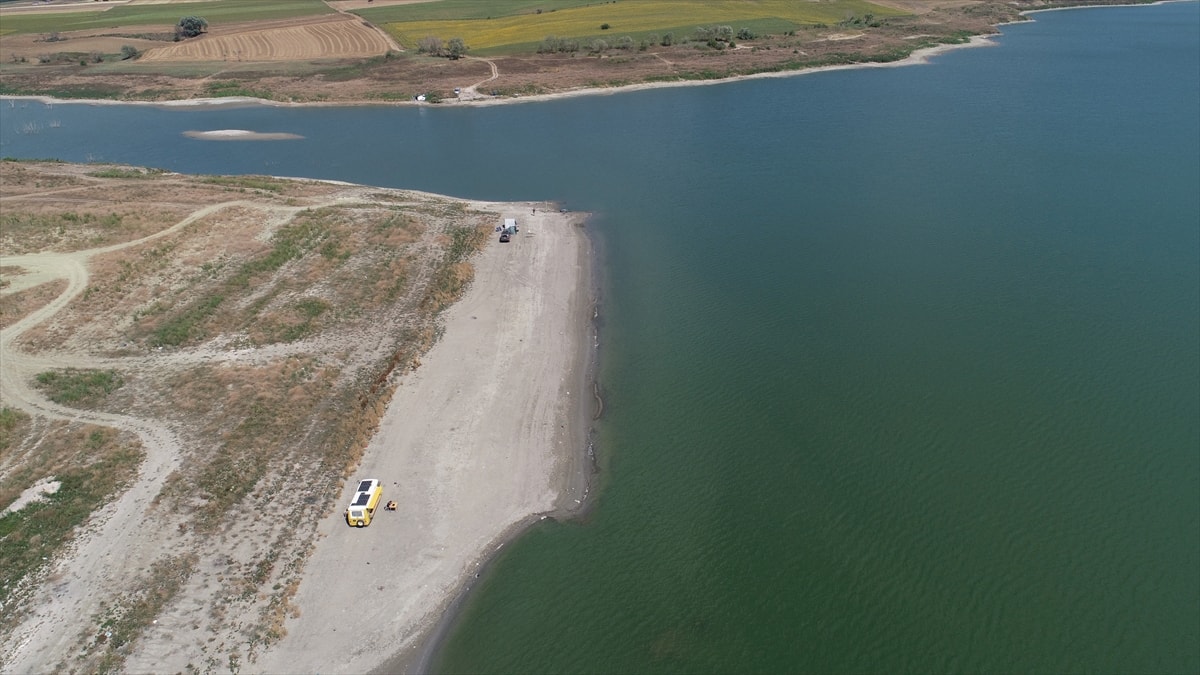 Tekirdağ'ın Marmaraereğlisi ilçesindeki Türkmenli Göleti'nin su seviyesi, yaşanan kuraklık nedeniyle ciddi oranda azaldı.