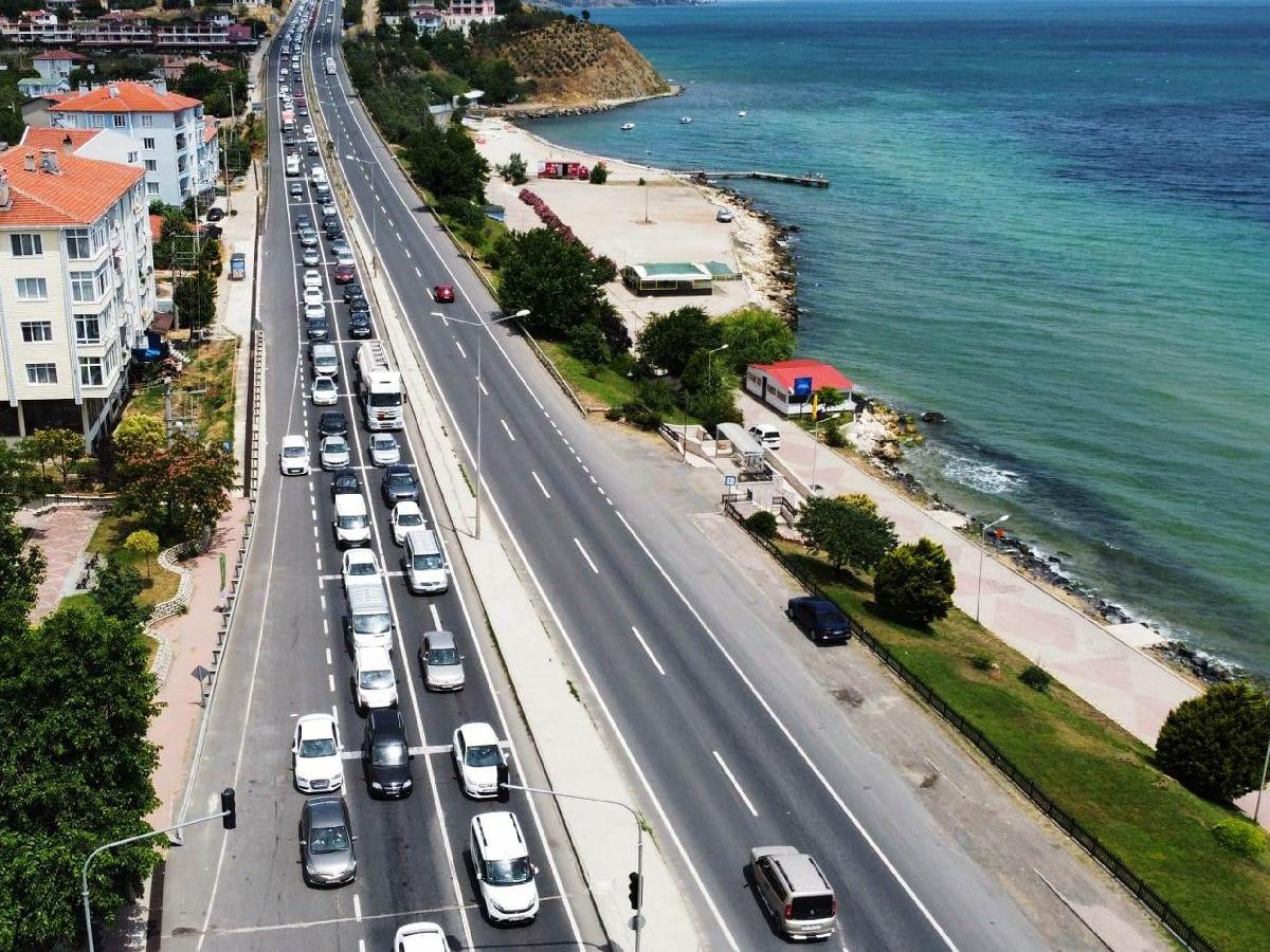 Kurban Bayramı'nın ilk gününü Marmara Denizi ve Saros Körfezi kıyılarında geçirmek isteyenler, Tekirdağ girişinde kilometrelerce araç kuyruğu oluşturdu.