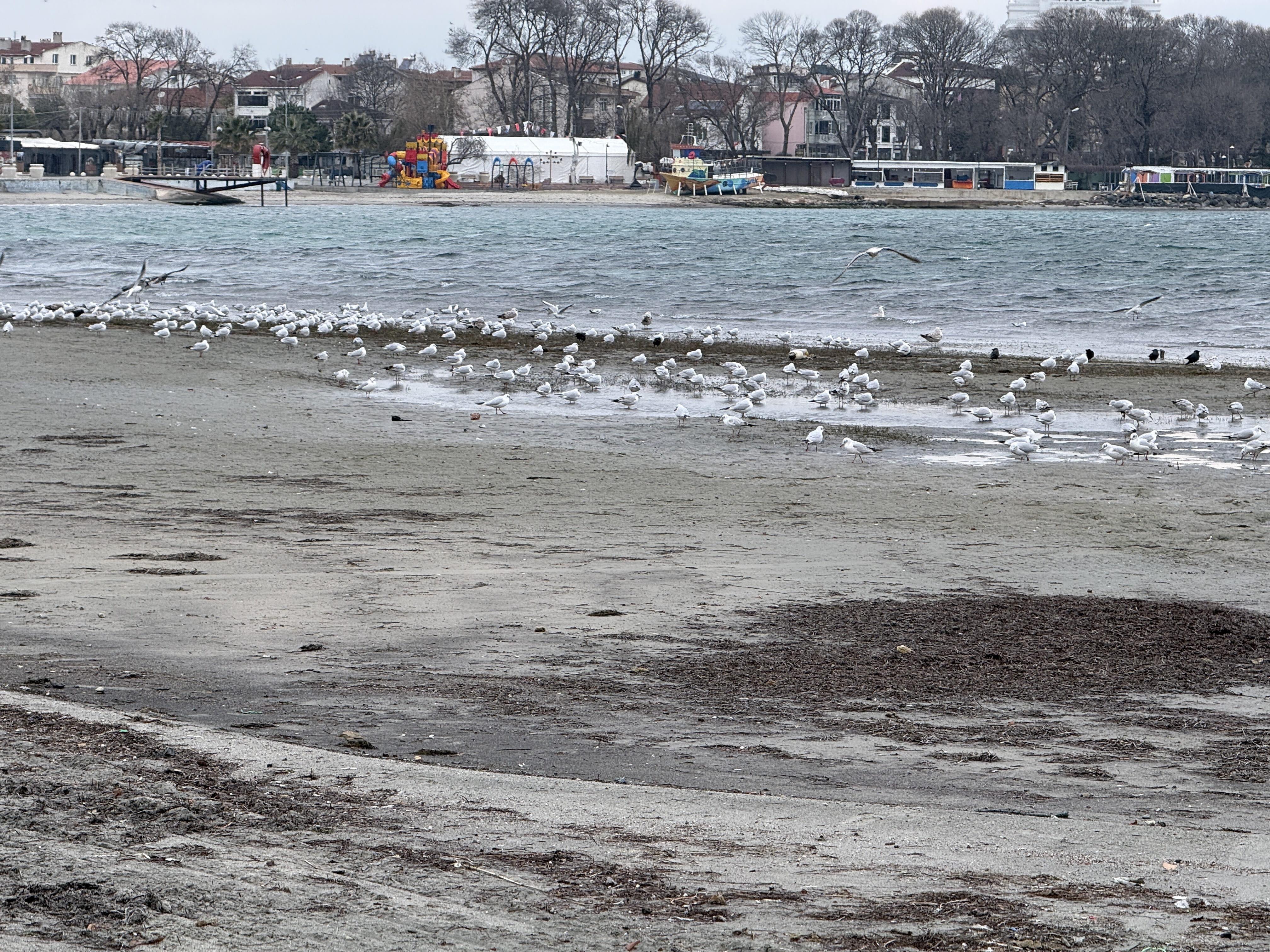 Suyun çekildiği plajda bazı vatandaşlar yürüyüş yaptı, fotoğraf çektirdi.