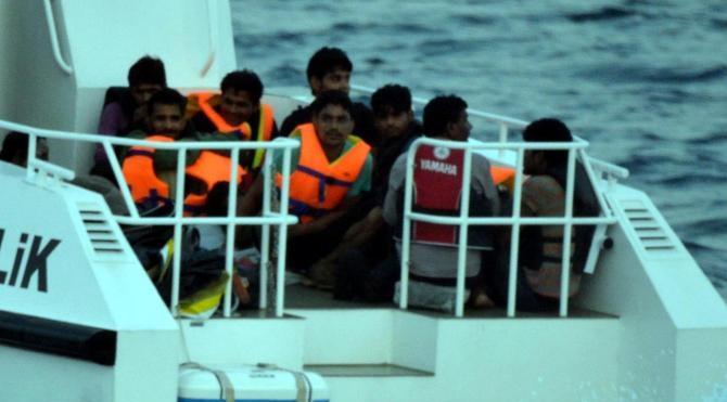 Yaşar ANTERBODRUM (Muğla), (DHA)- MUĞLA`nın Bodrum ilçesinden yasa dışı yollardan Yunanistan`ın İstaköy (Kos) Adası`na geçmek isterken bindikleri teknenin motoru kıyıdan 1 mil açıkta arızalanan Afganistan uyruklu 40 kaçak sahil güvenlik ekipleri tarafından kurtarıldı.