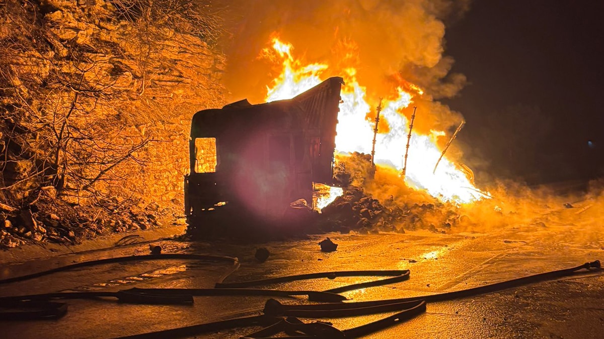 Yangını fark eden sürücü, aracı emniyet şeridinde park ederek durumu 112 Acil Çağrı Merkezine bildirdi. Yangın kısa sürede büyürken araç alev topuna döndü. İhbar üzerine bölgeye ulaşan itfaiye ekiplerinin müdahalesi sonucu yangın söndürüldü. Yangın sebebiyle TIR, kullanılmaz hale geldi.
