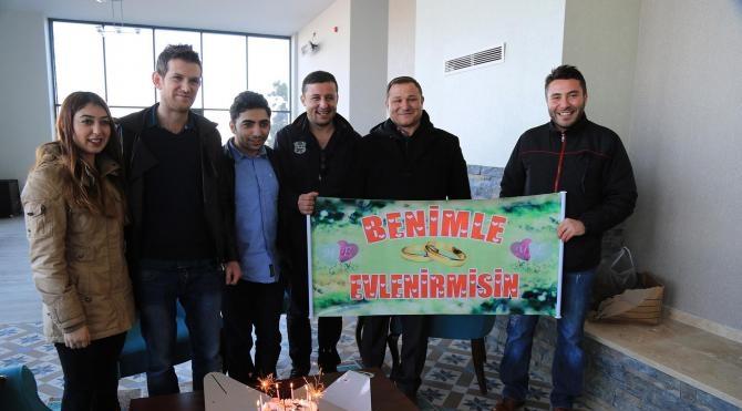 Osman Nuri BOYACIDENİZLİ, (DHA)- DENİZLİ Büyükşehir Belediyesi`ne bağlı Ulaşım A.Ş.`de çalışan 27 yaşındaki Emrah Demir, hemşire olan arkadaşı 24 yaşındaki Merve Fındık`a teleferikte sürpriz evlenme teklifi yaptı. Yüksekten korkan Merve Fındık, teleferikte endişeli anlar yaşarken, `Benimle evlenir misin?` afişini görünce şaşkınlık yaşadı. Emrah Demir`in uzattığı yüzüğü parmağına takan Fındık, `Evet` yanıtı verdi. İki genç teleferikten indikten sonra 1400 rakımda pasta kesti. Büyükşehir Belediyesi`nin bir süre önce hizmete aldığı Bağbaşı Yaylası`ndaki teleferik, zaman zaman ilginç anlara sahne oluyor. Denizli Büyükşehir Belediyesi`ne bağlı Ulaşım A.Ş.`de çalışan Emrah Demir, arkadaşlarıyla, İstanbul`da hemşire olarak çalışan arkadaşı Merve Fındık`a sürpriz hazırladı. Denizli`ye gelen arkadaşını teleferiğe götüren Emrah Demir, teleferik hareket edip Bağbaşı Yaylası`na çıkarken Fındık`a evlenme teklif etti. Teleferik hareket ettikten sonra yükseklikten korkan ve heyecanlı anlar yaşayan Merve Fındık, Emrah Demir`in arkadaşlarının, `Benimle evlenir misin?` afişini açması üzerine önce şaşkınlık yaşadı. Ardından Serbest, diz çökerek cebinden yüzük çıkarıp, kız arkadaşına evlenme teklifinde bulundu. Şaşkınlıkla beraber mutluluk yaşayan Fındık, `Evet` diyerek teklifi kabul etti. Evliliğe ilk adımı atmanın mutluluğunu 1400 metre rakımdaki teleferikte yaşayan iki genç, daha sonra bu anı Bağbaşı Yaylası`nda pasta keserek kutladı. Merve Fındık, hiç beklemediği bir anda evlilik teklifi aldığını, kendisine yapılan sürprizle şaşkına döndüğünü belirterek, çok mutlu olduğunu söyledi. DHA-Genel - Türkiye-Denizli - Osman Nuri BOYACI 2015-12-30 13:30:36