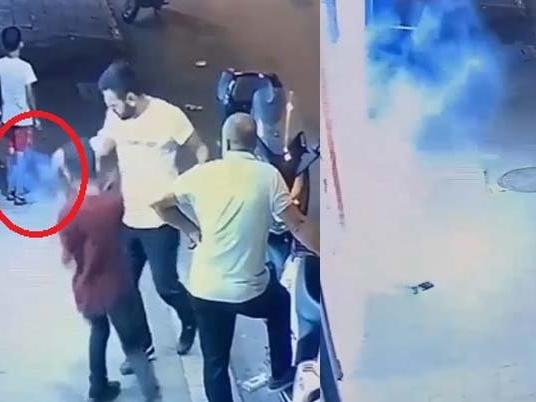 Tedirgin olan iş yeri sahibi, telefonu yere attı. Bu sırada telefon bataryası patladı. Patlama, iş yerinin güvenlik kamerasına yansıdı. (DHA)