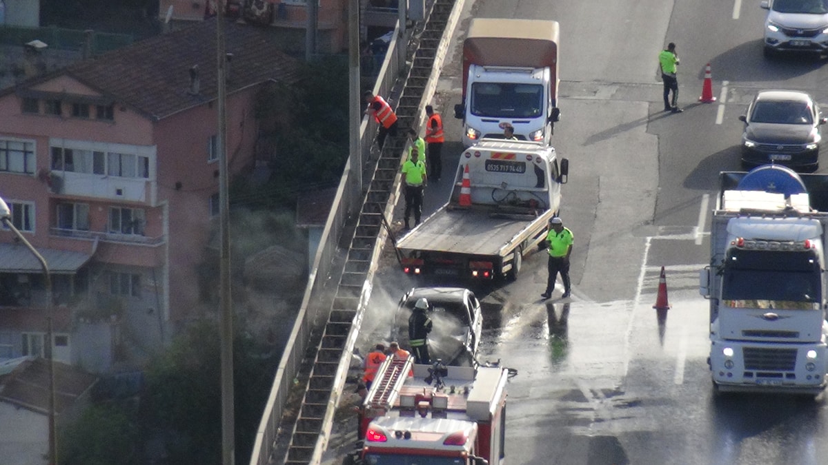 Yangın, saat 18.30 sıralarında TEM yolu İzmit geçişi Prof. Dr. Mustafa İnan Viyadüğü üzerinde meydana geldi. 2 şeritli yolda Ankara istikametine seyir halinde olan sürücüsü ve plakası öğrenilemeyen otomobil, henüz bilinmeyen nedenden yanmaya başladı.