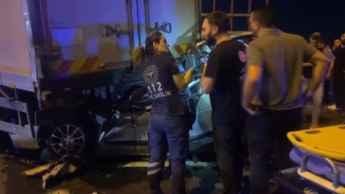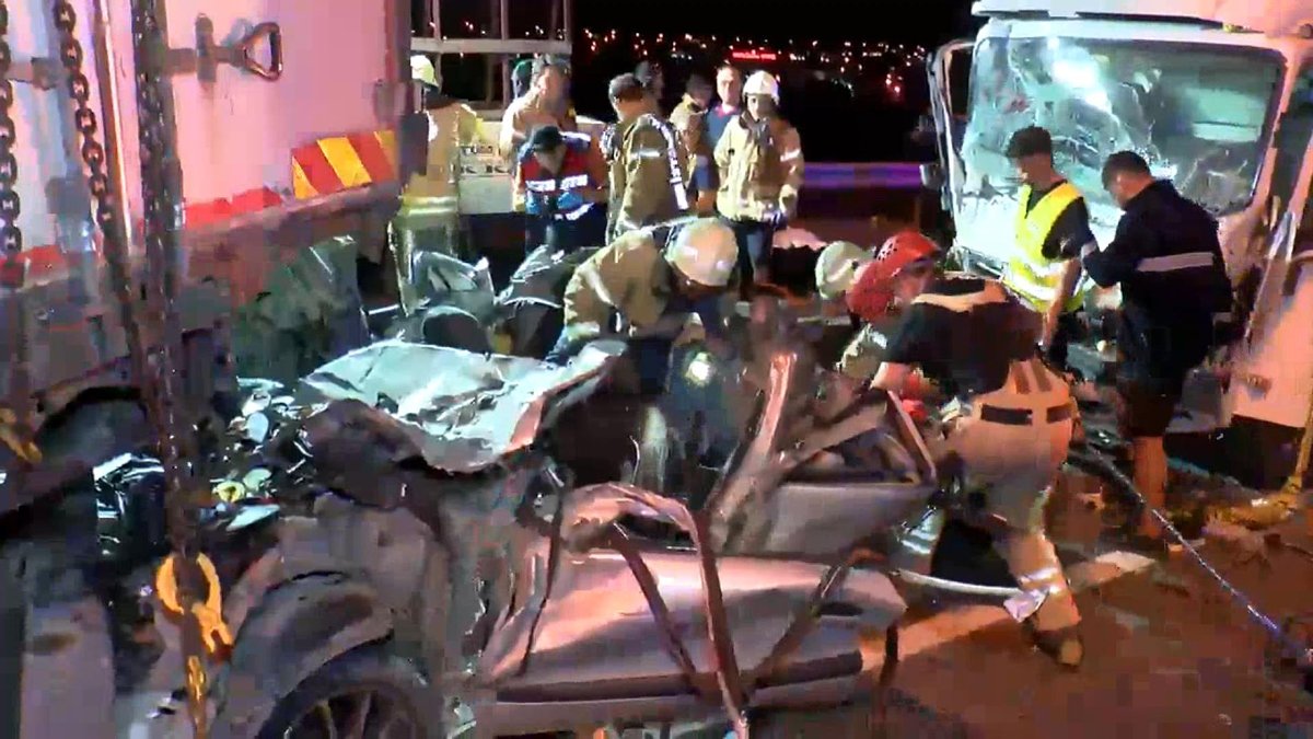 Kamyonun altına giren otomobile de başka bir kamyonet çarptı. Yoldan geçen tır ve hafif ticari araç da kazaya karışan araçlara çarparak durabildi.
