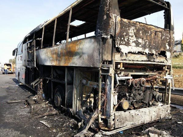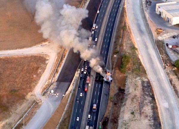 Aracın arkasından dumanlar yükseldiğini fark eden şoför otobüsü emniyet şeridine çekti. Bu sırada alevler otobüsün arkasını dışardan tamamen sardı.