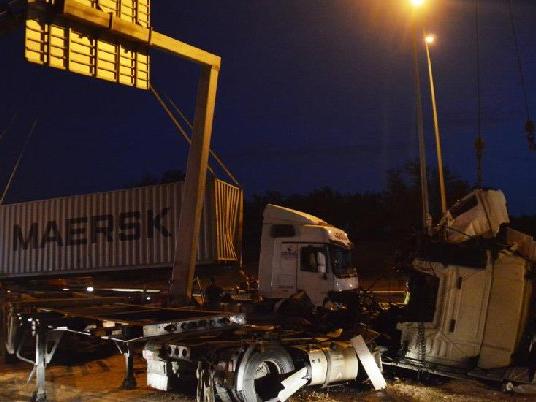 Edinilen bilgiye göre, sürücü Bülent Çaylak’(45) idaresindeki tır, sürücüsünün direksiyon hâkimiyetini kaybetmesi sonucu yol ayrımındaki tabela direğine çarparak durabildi. Çarpmanın etkisiyle tır hurda yığınına döndü.