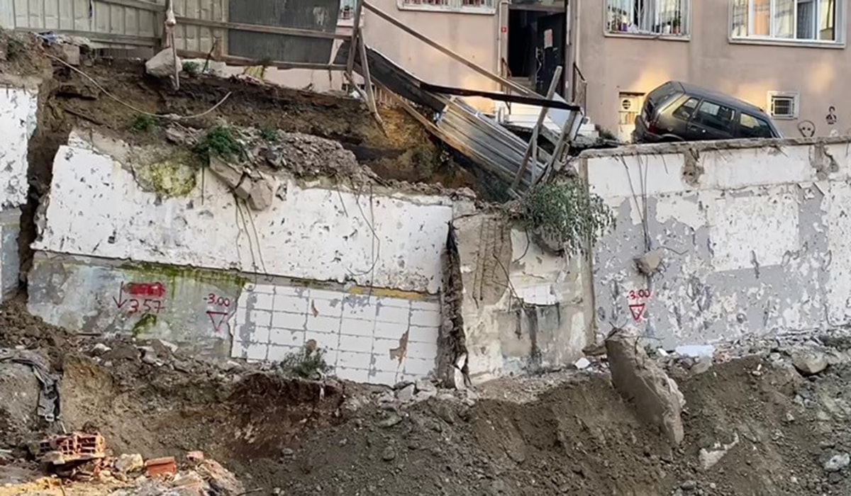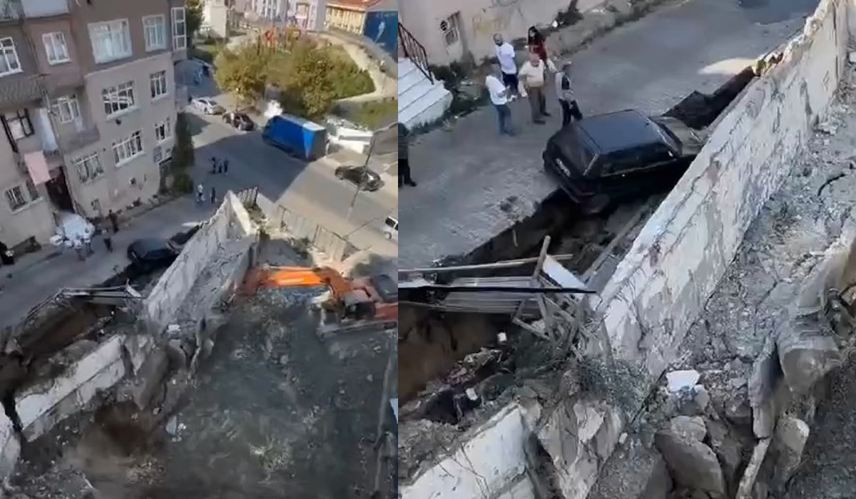 Güngören Merkez Mahallesi, Güvercin Sokak'ta saat 16.00 sıralarında temel kazma çalışması yapılırken eski binanın istinat duvarı ile yolda çökme meydana geldi.
