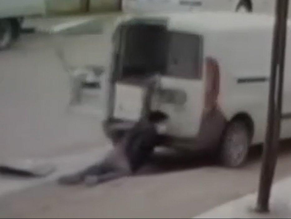 Kocaeli’nin Derince ilçesinde terlikle direksiyon başına geçen sürücü idaresindeki servis minibüsünün frenine basamayınca, büfeye malzeme getiren bir başka araca çarptı. Bu sırada aracından malzeme indiren Kartal Kubilay Y. ise iki araç arasında sıkıştı. Kaza, güvenlik kameraları tarafından saniye saniye kaydedildi.
