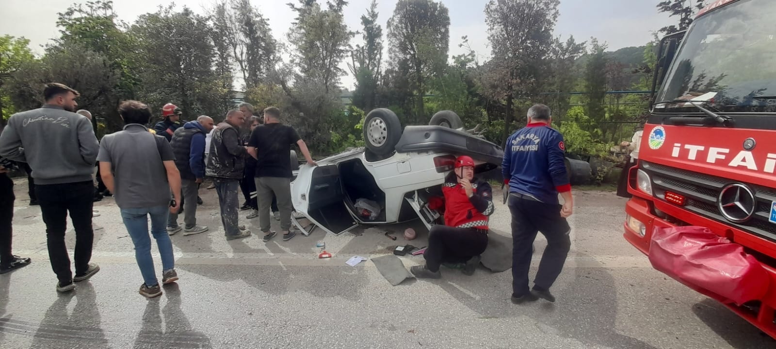 Sakarya'nın Arifiye ilçesi Arifbey Mahallesi Zübeyde Hanım Caddesi’nde meydana geldi. Arifiye yönüne giden Ertuğrul Y., idaresindeki otomobil, sürücüsünün direksiyon hakimiyetini kaybetmesi sonucu bir iş yerine ait fidanlıkta, ağaçlı saksılara çarptı, ters döndü.