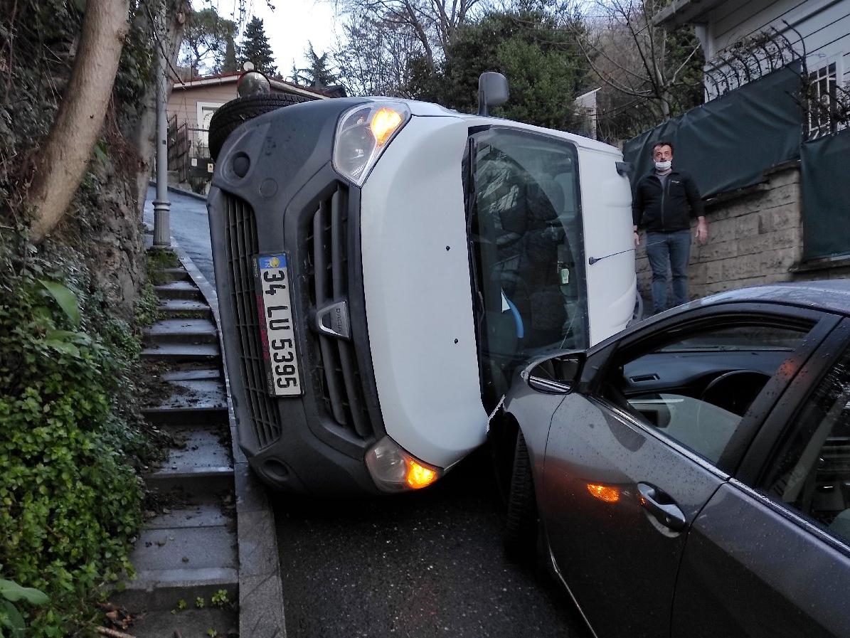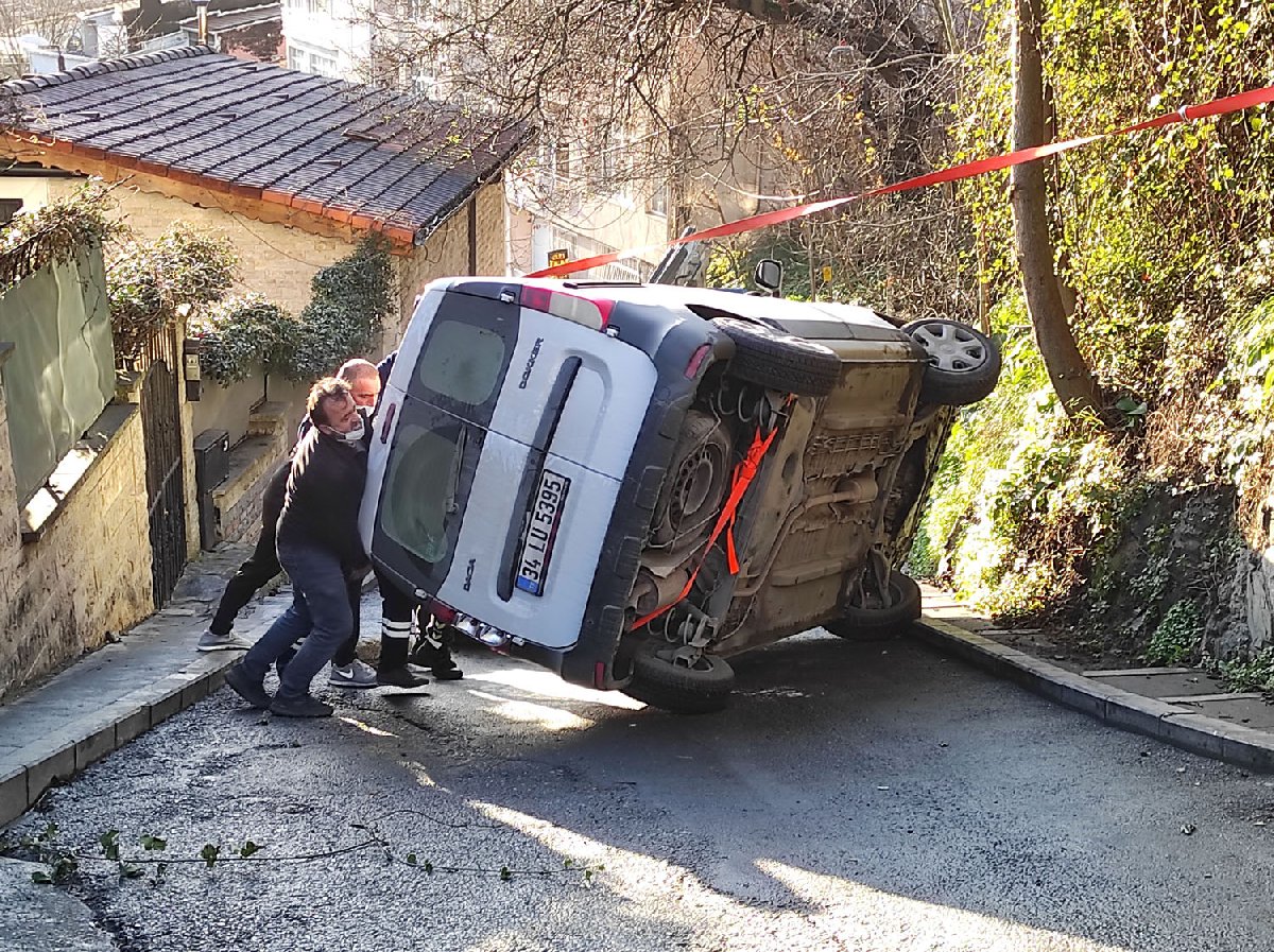 Kaymasını önlemek için tekerlerine taş konuldu, çevredekiler bir yandan da elleriyle destek oldu. Olay yerine polis ve çekici çağrıldı. Çekici gelene kadar hafif ticari araç halatla bir ağaca bağlandı. Bir süre sonra vatandaşların yardımıyla hafif ticari araç düzeltildi. Kaza yapan araçlar nedeniyle kapanan yol, araçların kaldırılmasıyla yeniden trafiğe açıldı. (DHA)