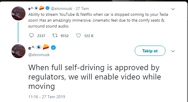 Amerikalı elektrikli otomobil üreticisi Tesla; Model 3, Model S ve Model X otomobillerine gelen güncellemeyle araç içinden Netflix ve Youtube izlemenizi sağlıyor.