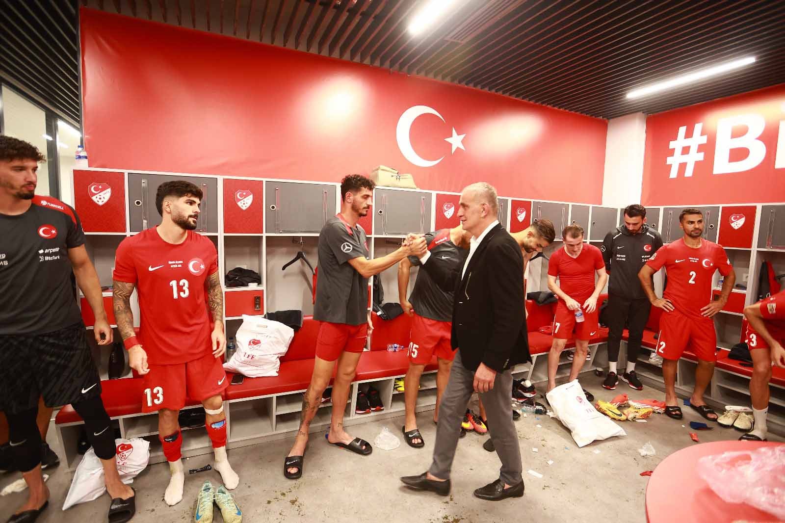 Federasyondan yapılan açıklamada, "90 dakika boyunca sergilemiş oldukları başarılı performans ve aldıkları galibiyetten ötürü A Millî Takımımızın teknik direktörü Vincenzo Montella'yı ve millî futbolcularımızı teker teker kutlayan Başkan Hacıosmanoğlu, bundan sonraki karşılaşmalar için başarı dileklerini iletirken; Ay-Yıldızlılarımız da vermiş oldukları destekten ötürü Başkan Hacıosmanoğlu'na teşekkür etti" ifadeleri yer aldı.