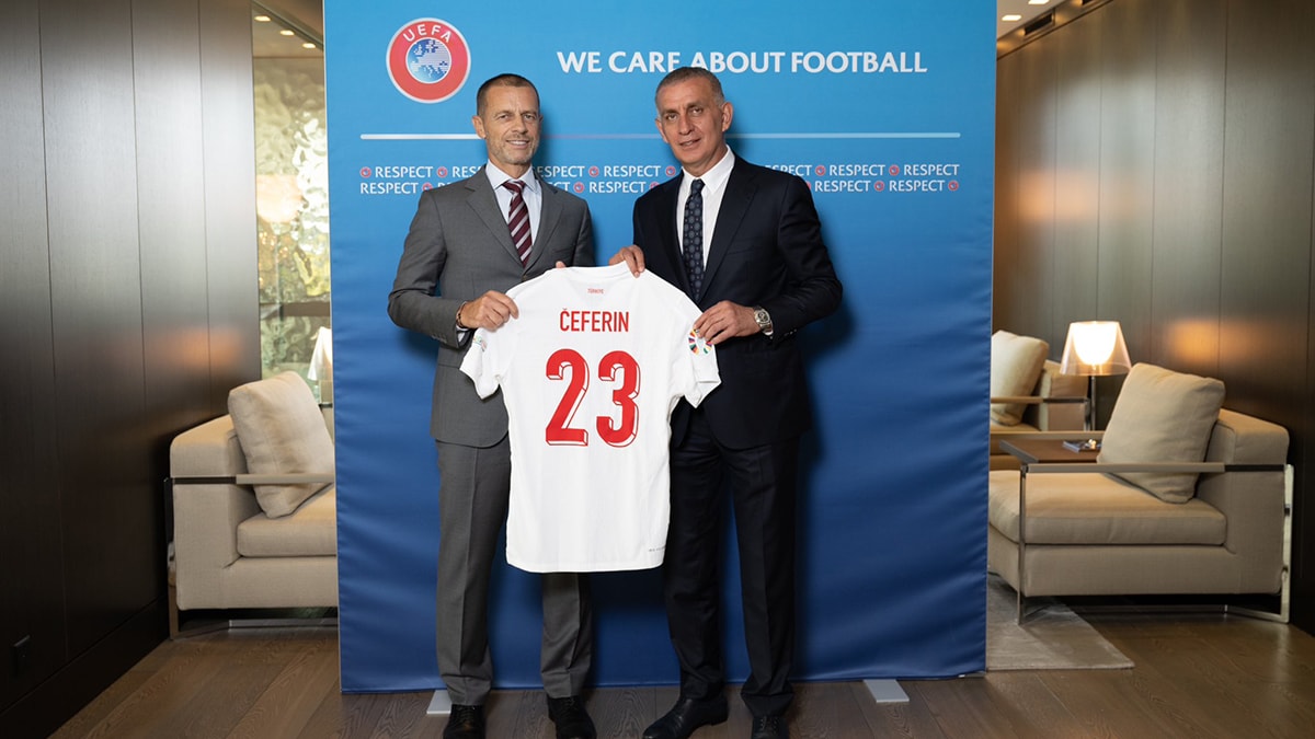 Görüşmenin ardından, TFF Başkanı İbrahim Hacıosmanoğlu, Aleksander Ceferin, Zoran Lakovic ve Kadir Kardaş’a isimlerinin yazılı olduğu A Milli Takım formalarını hediye ederken, Ceferin de Hacıosmanoğlu’na ziyaretin anısına özel bir flama takdim etti.