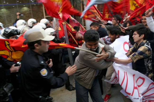 Çankaya Mahallesi'ndeki ara sokakta toplanan ve kendilerini Dev-Lis olarak adlandıran yaklaşık 100 lise öğrencisi, üniversite sınavlarını protesto etmek amacıyla Atatürk Caddesi üzerindeki Büyükşehir Belediye binası önüne kadar yürüyüp basın açıklaması yapmak istedi. Ancak grubun önüne zırhlı araç ve çevik ekipleriyle barikat kuran polis, yürüyüşün yasal olmadığını belirterek izin vermedi. Basın açıklamasının grubun bulunduğu yerde yapılmasını isteyen emniyet yetkilileriyle, göstericiler arasında yaklaşık 1 saat süren görüşmeler yapıldı. Bu sırada öğrenciler, müzik eşliğinde şarkılar söyleyip halaylar çekerek, sınav sistemini protesto eden sloganlar attı.