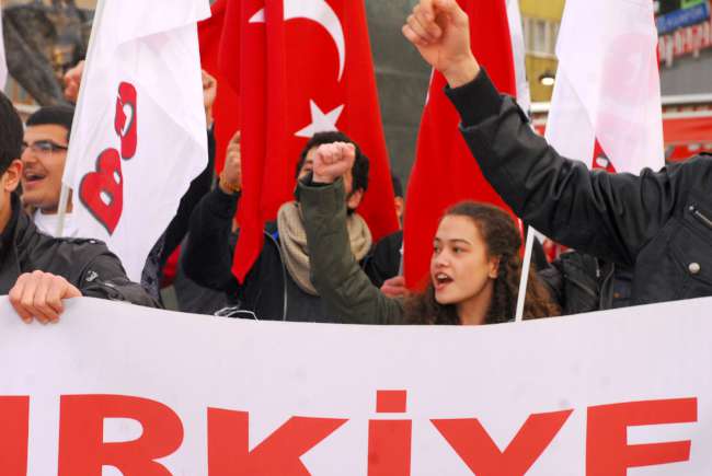 TGB İzmir Liseliler grubuna üye yaklaşık 100 kişilik grup yürüyüş sırasında 'Atatürk gençliği iş başında', 'Tayyip'in hakkından gençlik gelecek' ve 'Ne YGS ne LYS, Tayyip girsin strese' sloganları attı. Slogan atıp, marşlar söyleyip ve davul çalarak Kıbrıs Şehitleri Caddesi üzerindeki ÖSYM Bürosu önün gelen grup burada basın açıklaması yaptı.