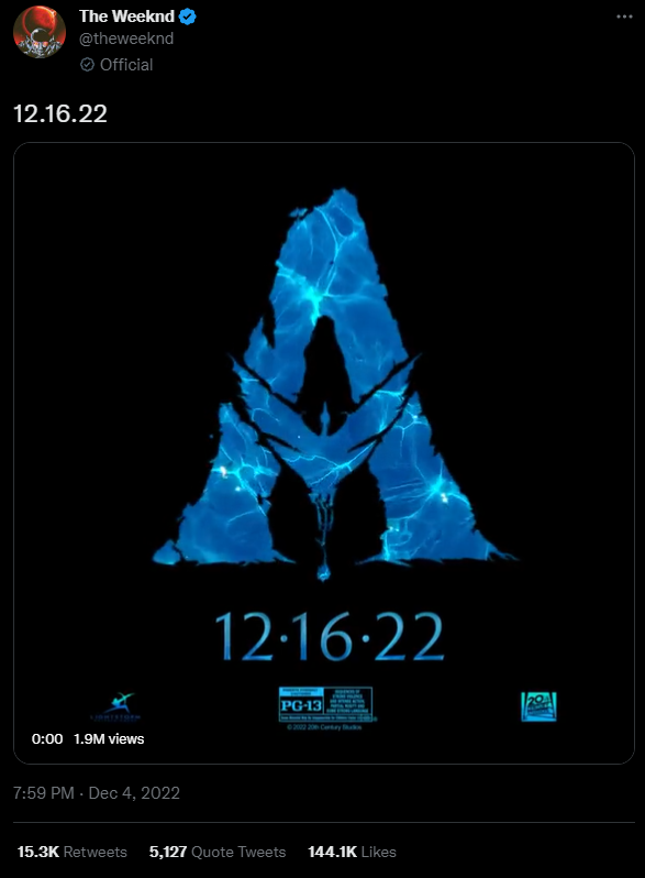 The Way of Water'ın müzikleri arasında The Weeknd'in de bir parçası yer alacak. The Weeknd de Avatar filminin resmi Twitter sayfaları da haberi doğruladı.