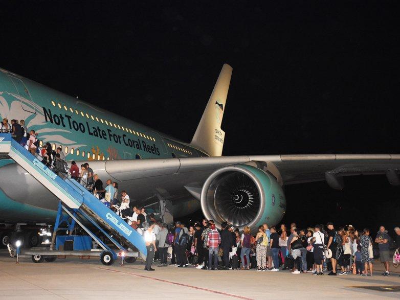 Yakıt ikmalinin ardından havalimanında bekleyen 222 yolcu otobüslerle uçağa taşındı. Uçak yolcularını alarak 01.30 sıralarında havalimanından ayrıldı. Dalaman Havalimanı'na ilk kez gelen A380 tipi yolcu uçağı havalimanı çalışanları tarafından da ilgiyle izlendi. Uçağın İngiliz yolcuları almak için tekrar Dalaman'a geleceği öğrenildi.