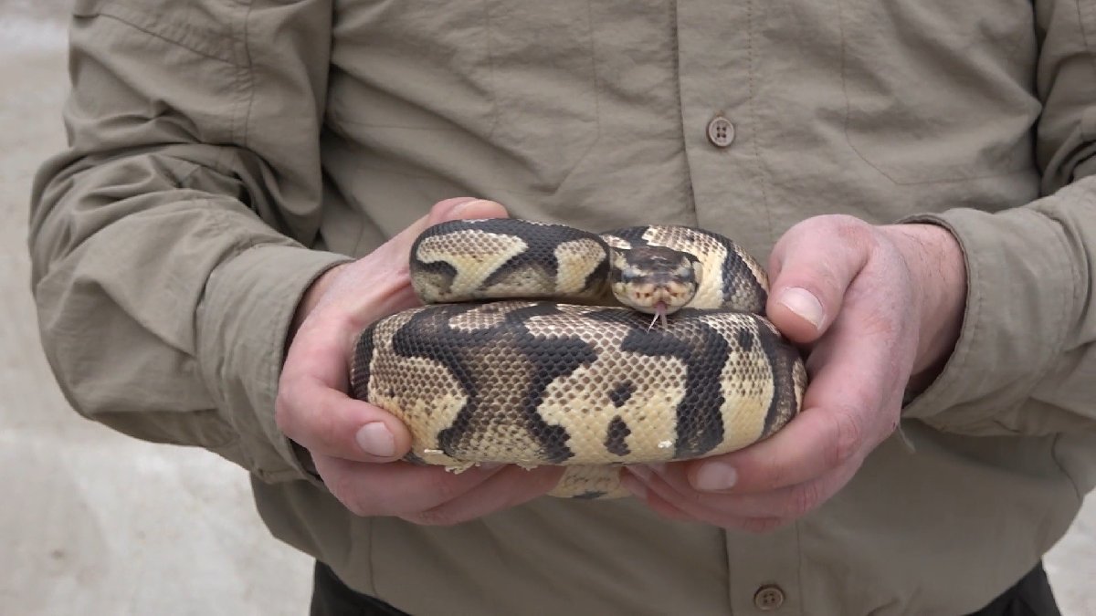 Kırıkkale'de yaşayan B.M. isimli bir genç, Afrika kökenli ball python (top piton) cinsi yılanın görüntülerini TikTok'tan paylaştı.