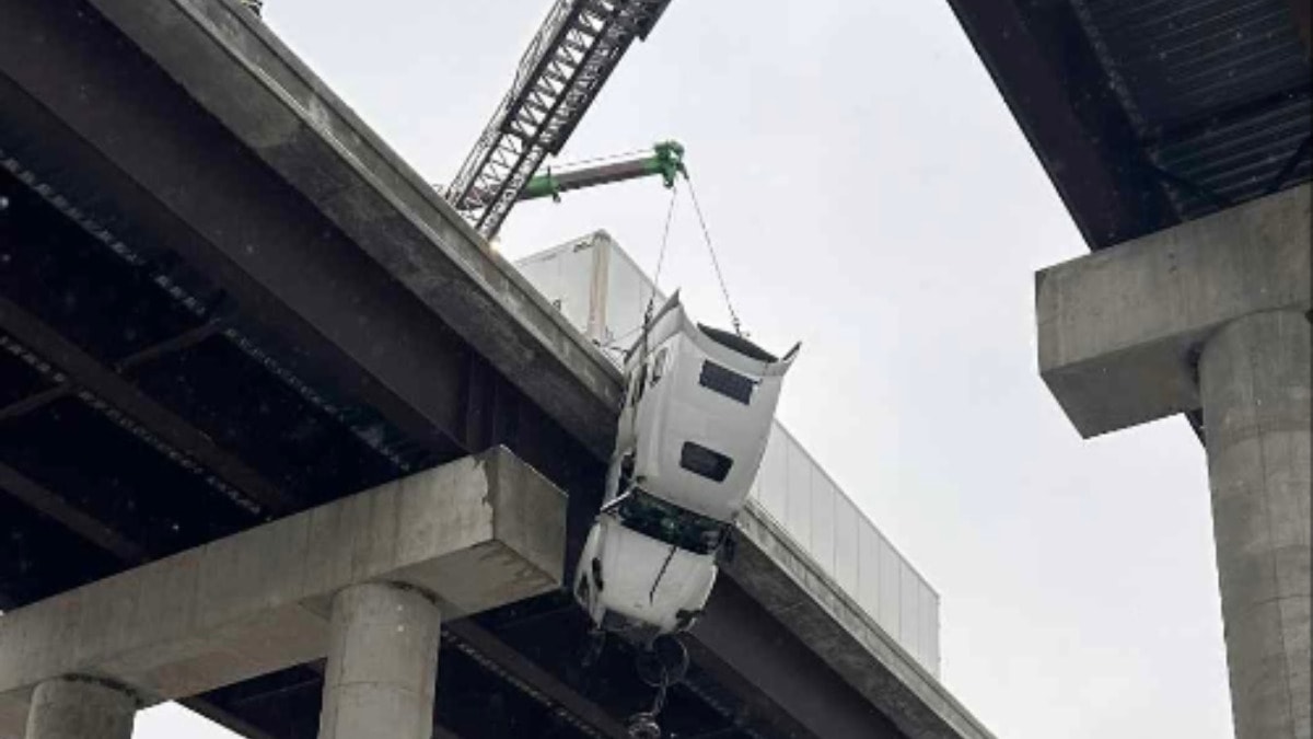 Bryant, merdivenli araçla yaklaşmayı denediklerini, diğer şeritten ve aşağıdan ulaşmayı da denediklerini ama hiçbirinin mümkün olmadığını belirtti. Sonunda teknik kurtarma ekibi çağrıldı ve ekip halatla aşağı inerek sürücüyü kabinden çıkardı.