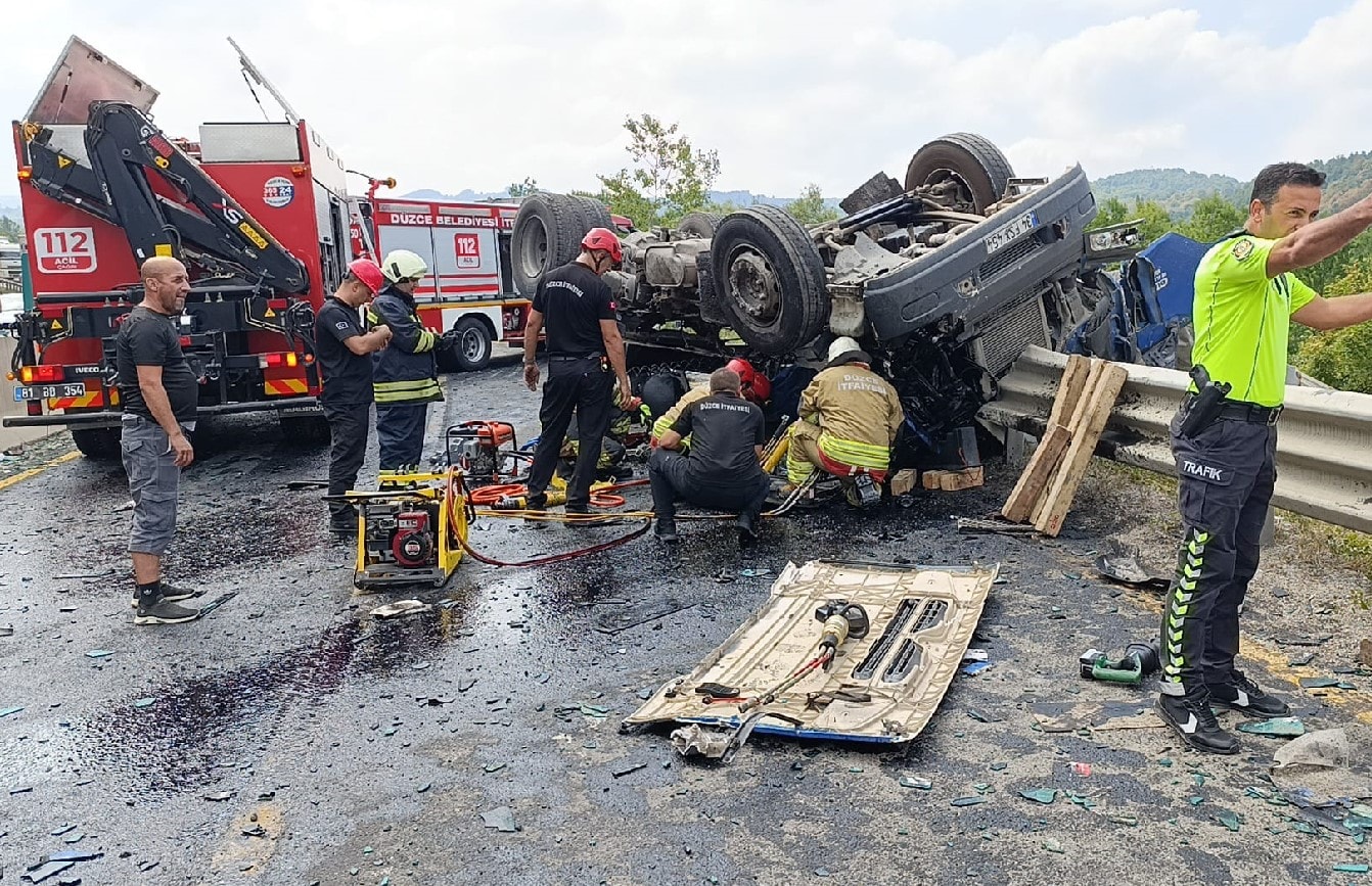 TIR’daki ağır yaralanan 2 kişi, ambulanslarla Düzce Üniversitesi Eğitim ve Araştırma Hastanesi’ne kaldırıldı. Bir kişi burada yapılan tüm müdahaleye rağmen kurtarılamayarak can verdi. Kaza nedeniyle yolun Ankara istikameti tamamen trafiğe kapandı. Kaza yapan araçların ve ölen kişilerin cenazesinin olay yerinden kaldırılması için çalışma başlatıldı.
