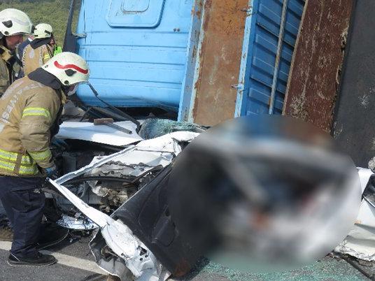 Devrilen kamyon olay yerine gelen vinç yardımıyla kaldırıldı. Kamyon altına kalan otomobilin hurdaya döndüğü gözlendi. Kaza nedeniyle yolda bir süreliğine trafik yoğunluğu yaşandı.