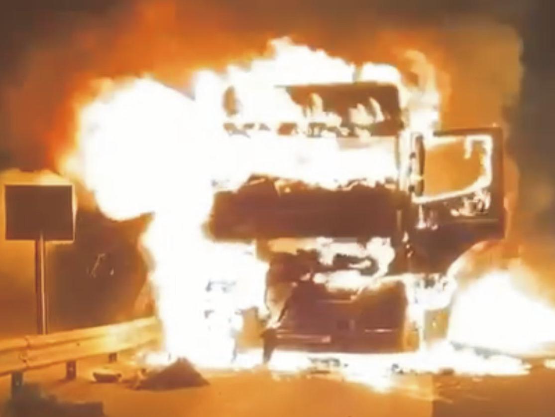 Durumu fark eden Seyhan, TIR'ı emniyet şeridine park ettikten sonra araçtan inip itfaiyeyi aradı. Alevler, kısa sürede TIR'ın tamamını sardı. Olay yerine gelen itfaiye ekipleri yangını söndürürken, TIR kullanılamaz hale geldi. Olayla ilgili soruşturma başlatıldı.