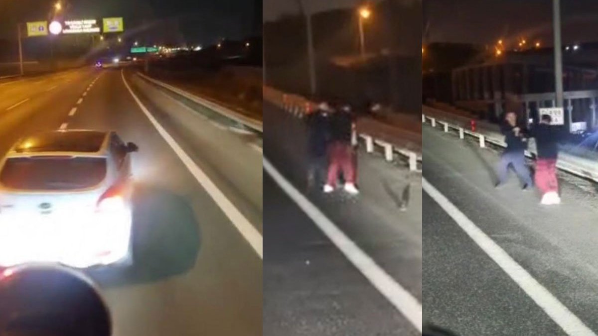 Kocaeli'nin Dilovası ilçesi TEM yolunda otomobil sürücüsü, tartıştığı TIR şoförü Onur Salt'ın boğazını sıkarak, tabancayla da havaya ateş açtı. Bu anlar, araç kamerasına yansıdı.