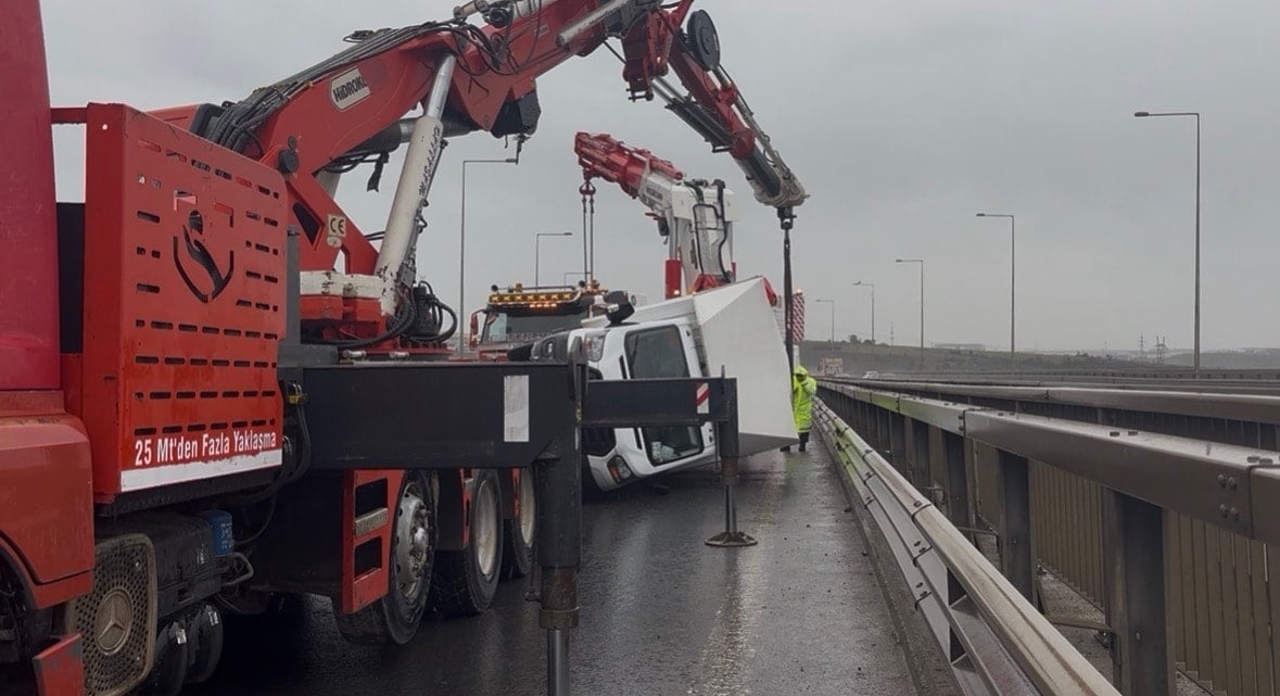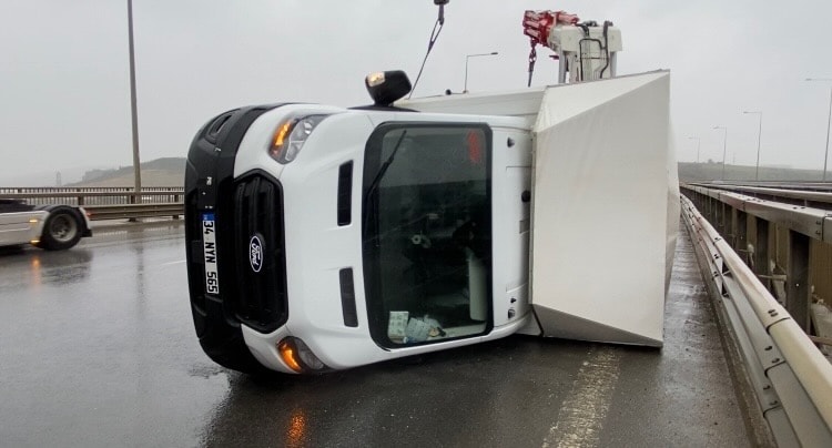 Osmangazi Köprüsü ile Kuzey Marmara Otoyolu arasındaki bağlantıyı sağlayan yolda fırtınanın etkisiyle 2 tır ve 1 kamyonet devrildi.