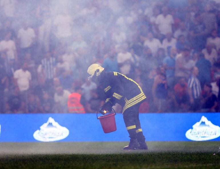 Statta yapılan anons ve polisin güvenliği sağlamasının ardından ortam sakinleşti. Hakemin iki takım yetkilileri ve UEFA görevlileriyle yaptığı görüşmeler sonrası karşılaşma saat 21.15'te başladı.