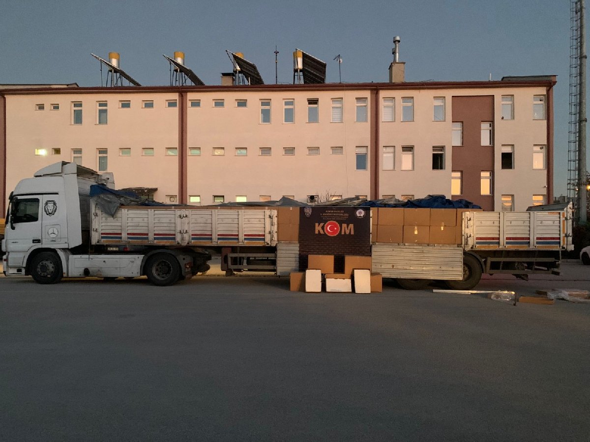 Önü kesilerek durdurulan araçtaki arama sonrası dorsesinde 3 milyon 100 bin doldurulmuş kaçak sigara ele geçirildi. Sigaralara Kaçakçılıkla Mücadele Kanunu kapsamında el konuldu, gözaltına alınan araç sürücüsü H.A. tutuklandı.