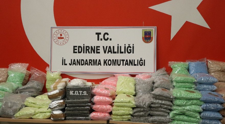 Bakan Soylu, Edirne İl Jandarma Komutanlığı ekiplerinin uzun süren takibi sonucu ülkeye giriş yapan bir TIR'da, 460 kilogram ecstasy, 35 kilogram kokain, 2 kilogram metamfetamin, 760 gram reçine esrar ve 9 tüp likit esrar ele geçirildiğini duyurdu.